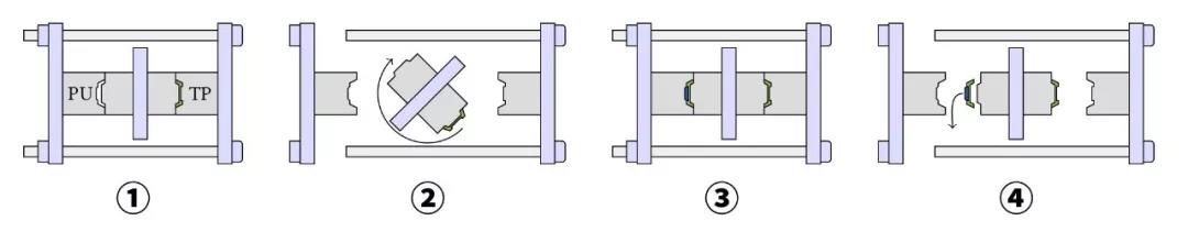 ????????2 . 旋轉單元旋轉。熱塑性塑料基體現在位于左腔(PU腔)中。