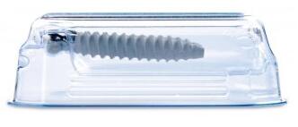 ????????Placon公司生產的 Orthofix醫療托盤是一款定制設計的包裝,用于固定外科植入手術用的醫療螺釘。這款包裝包括固定托盤和托盤蓋;兩個醫用螺釘固定在托盤內,其中每個螺釘頭鎖定在托盤中,每個螺釘的主體懸掛在托盤內。這種配置可防止螺釘上的羥基磷灰石涂層在運輸和搬運過程中磨損。