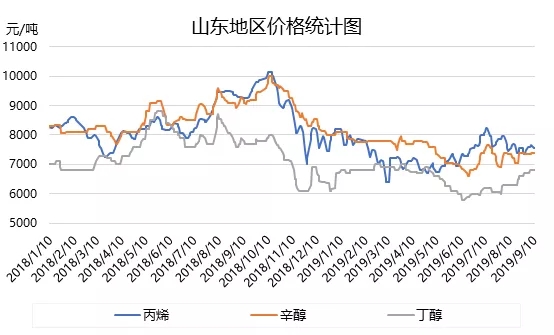 ????????如上圖所示,為丙烯及丁辛醇價格走勢圖,雖然丁辛醇呈現(xiàn)上行走勢,但漲勢趨緩,多是處于消除低價狀態(tài)。丙烯近期穩(wěn)中下行,但在一定程度上緩解了丁辛醇行業(yè)的虧損壓力,尤其辛醇行業(yè),目前基本在成本線附近。加之辛醇行業(yè)存檢修情況,目前低價已經(jīng)減少,廠家基本維持在7500元/噸水平。丁醇近期走勢穩(wěn)健,各廠家報盤基本在6800元/噸自提。雖然對DOP、DBP存成本傳導,但此次利好支撐作用小于苯酐。