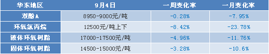 ????????據中宇數據監測,8月份以來環氧樹脂產業鏈上整體呈現出下跌態勢,其中環氧氯丙烷市場月內更是暴跌暴漲,8月整體呈現出下跌走勢,其對環氧樹脂成本面有明顯拖累,而環氧樹脂市場亦跟隨其整體下行。雙酚A市場亦受到環氧氯丙烷的壓制走弱。