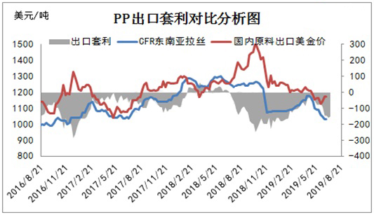 ????????面對國內PP產能激增時代,無論是貿易還是生產企業都在謀求出路,于是出口成為多數業者最佳選擇。由PP出口套利對比分析中發現,以CFR東南亞拉絲為例,國內PP拉絲產品出口到東南亞價格仍高于當地價100-150元/噸,而且照目前兩者價差發展趨勢發現,國內市場在8月底至9月初正是下游需求逐步恢復之際,國內價格有抬高可能,短期仍不適合開啟出口窗口。