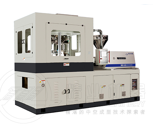 ????????該機(jī)型采用三工位結(jié)構(gòu),即第一工位注射瓶坯,第二工位拉伸吹瓶,第三工位脫瓶,其優(yōu)勢(shì)在于管坯注塑成型后,利用自身所保留的熱量,直接進(jìn)行拉伸吹塑,避免了管坯先要冷卻,損失熱量,然后再加溫,能量反復(fù)消耗的缺點(diǎn)。產(chǎn)品只一次成型,沒(méi)有中間轉(zhuǎn)運(yùn)環(huán)節(jié),徹底杜絕管坯相互碰撞的可能性,保證了極高的外觀質(zhì)量。