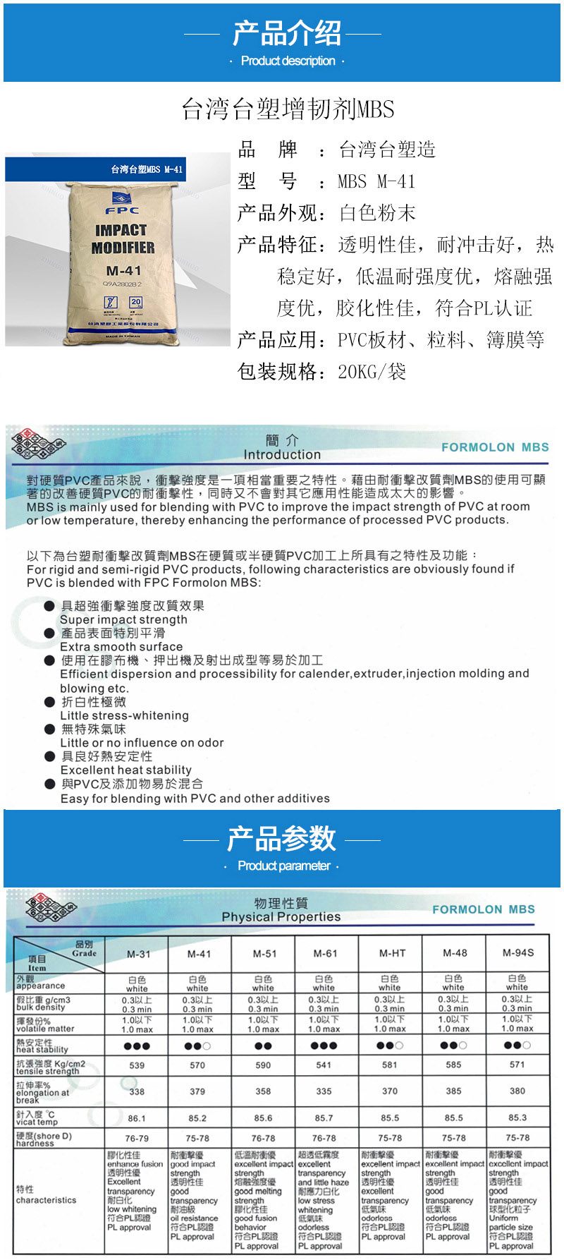 - 增韌劑M-41 透明 耐油級(jí) 低溫抗沖擊 PVC熱穩(wěn)定 MBS臺(tái)塑M41 物性表, 增韌劑M-41 透明 耐油級(jí) 低溫抗沖擊 PVC熱穩(wěn)定 MBS臺(tái)塑M41 產(chǎn)品參數(shù),增韌劑M-41 透明 耐油級(jí) 低溫抗沖擊 PVC熱穩(wěn)定 MBS臺(tái)塑M41 性能表,增韌劑M-41 透明 耐油級(jí) 低溫抗沖擊 PVC熱穩(wěn)定 MBS臺(tái)塑M41 出廠報(bào)告, MSDS,, 物質(zhì)安全資料表, UL黃卡,{ SGS報(bào)告, RoHS, 食品級(jí)認(rèn)證, NSF飲用水標(biāo)準(zhǔn), 產(chǎn)品資料, 產(chǎn)品性能, 出廠報(bào)告, 原廠原包, 代理商, 熱變形溫度, 熔指數(shù), 流動(dòng)系數(shù), 抗沖擊性能、沖擊強(qiáng)度, 低溫韌性、低溫抗沖擊性能, 熔體流動(dòng)系數(shù)、熔體流動(dòng)速率, 加工工藝、加工參數(shù)、加工溫度, 歐盟RoHS 德國(guó)FDA 美國(guó)FDA 日本FDA