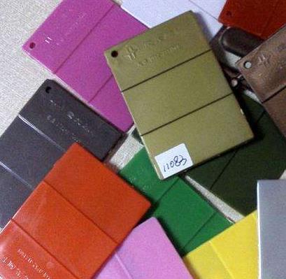 根據目標樣品,觀察分析透程度、色相深淺,確定成分中黑、白色所占的比例,彩色顏色確定彩色色粉濃度或含有熒光色粉比例。對色粉的著色力可用各種色粉在同一種塑料基材上打板確認,同時要掌握每一種彩色顏料加入一定比例的鈦白粉,其色相變化及濃度變化情況。