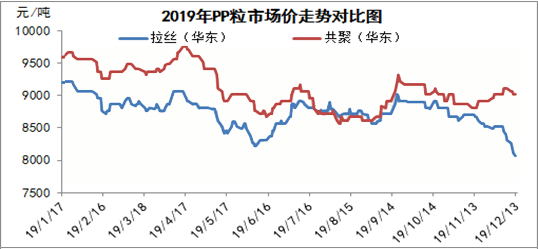 目前國(guó)內(nèi)石化庫存一直在降庫為主,多連續(xù)下調(diào)出廠降價(jià)銷售。而下游工廠采購多維持剛需,市場(chǎng)供需矛盾的突出,使得不少貿(mào)易商轉(zhuǎn)向觀望。2019年逐漸步入尾聲,又有兩家廠家近期不斷傳出試車的好消息:浙江石化PP裝置12月8日造粒裝置試車成功,原料為外采丙烯,該P(yáng)P裝置產(chǎn)能90萬噸/年(兩條線各45萬噸/年);其次是大連恒力二期試運(yùn)行計(jì)劃推遲在12月底試車STPP裝置,春節(jié)前后試運(yùn)行JPP裝置和乙烯裂解裝置。二期40萬噸/年(STPP和JPP線各20萬噸)。終端剛性需求縮水,高端貨源跟進(jìn)謹(jǐn)慎,行情下行明顯。