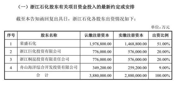 對此,證監會要求榮盛石化說明浙江石化未來的股權變化是否對項目實施構成重大影響。