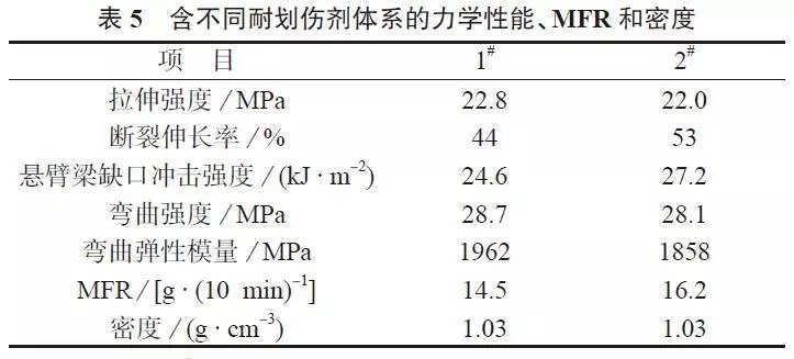 ????????3、酰胺類和有機硅類耐劃傷劑對比金發科技股份有限公司對比研究了酰胺類和有機硅類耐劃傷劑對彈性體增韌滑石粉填充PP材料的影響。