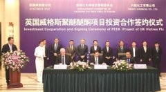 圖為簽約儀式現場 1月13日,英國威格斯公司和興福化工有限公司聚醚醚酮材料生產項目在沈陽友誼賓館舉行合作協議簽約儀式。 聚醚醚...
