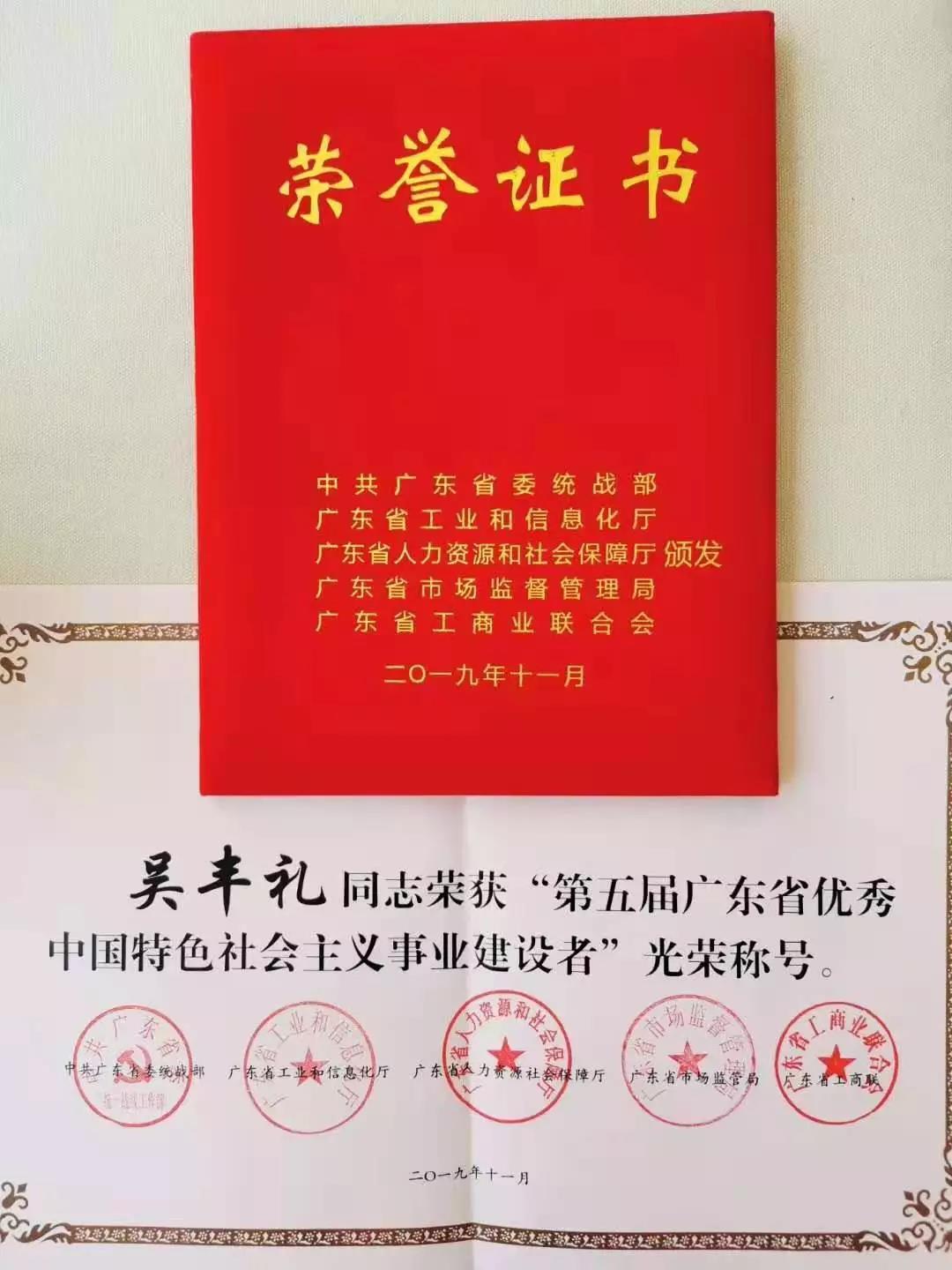 祝賀拓斯達董事長吳豐禮在2019粵商大會獲得榮譽稱號
