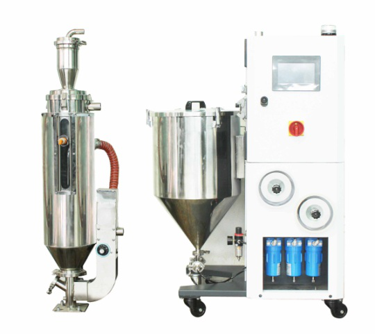 ????????該機型可用于對大多數不易吸濕的塑料原料進行干燥,如PS、PP、ABS等,最高干燥溫度可達160℃,也可選用雙層保溫機型,可使料桶溫度更均勻、熱量散失更少。另有諸多配件供選用,可實現熱風回收、過濾原料中鐵屑雜質等功能,亦可搭配腳架實現落地式安裝。