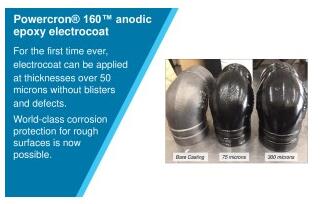 ????????POWERCRON?160陽極環氧電泳漆突破常規的電泳技術局限,改善了粗糙的零部件表面的腐蝕防護。這項電泳漆技術結合創新的聚合物設計、交聯劑和添加劑技術,讓用戶可在原有不可能的厚度上使用高品質薄膜。