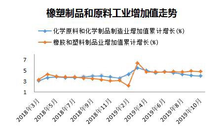 ????????10月份,化學原料和化學品制造業增加值同比增長3%,橡膠和塑料制品業增加值同比增長3.9%,顯然下游制品業增速還是快于上游原料,兩者增速差連續三個月收窄,源于10月份制品業下降速度快于原料。去年10月份PE、PP等塑料原料價格揭開下滑序幕,橡塑制品的增速明顯低于原料,總體看隨著原料端價格下跌,終端產品成本降低,從塑料制品增長角度看制品行業目前形勢略好于去年。