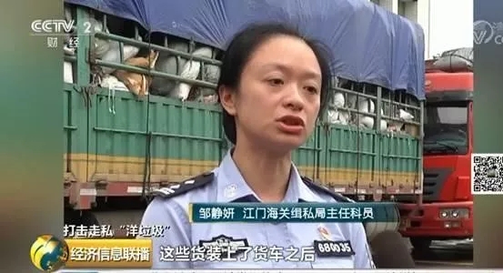 ????????這兩輛大貨車是從中緬邊界的云南瑞麗開過來的,車上的廢塑料是龐某團伙以繞關走私的方式從境外偷運進來。江門海關緝私局主任科員鄒靜妍:大概每一車30噸左右,這些貨裝上了貨車之后,就直接開往廣東那邊走私團伙的倉庫里面,當這些車上的貨物還沒有卸載的時候就給我們緝私警察現場查獲了。